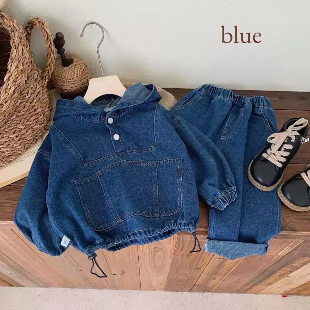 デニムのフード付きで可愛いセットアップです!